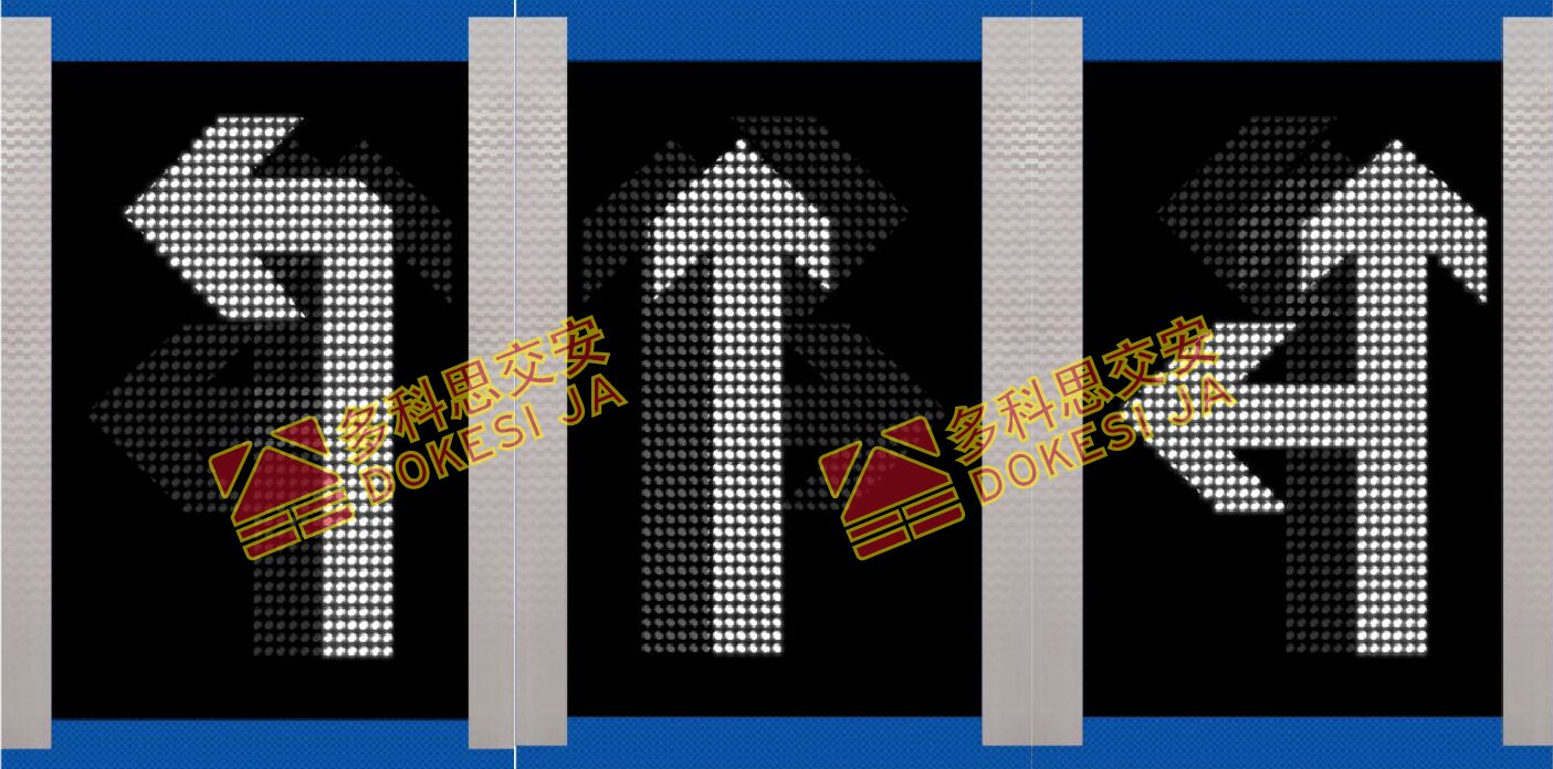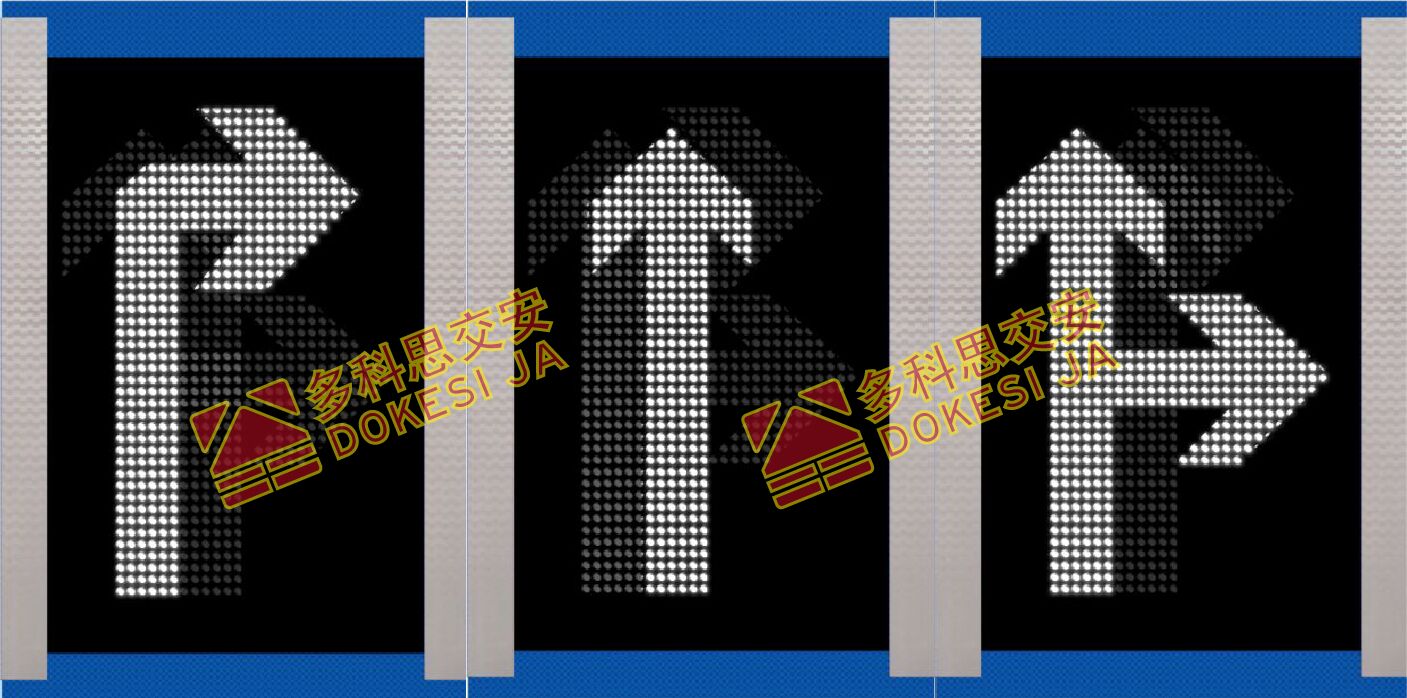 1、基本說明:標志顯示面板采用LED密集點陣組成車道箭頭,一個版面最多可顯示三個不同的車道箭頭。